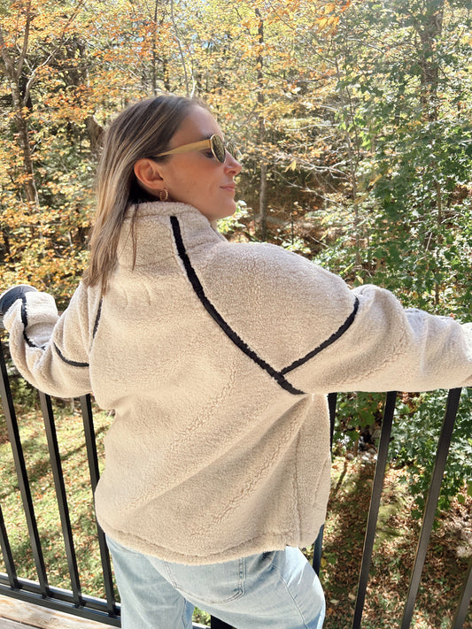 Vermont Cabin Fleece Pullover - Oatmeal/Black