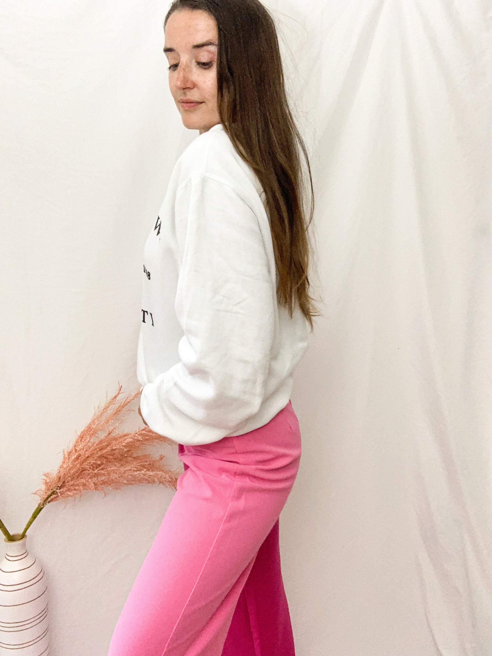 Keep warm and stylish all fall long with our adorable white colored Halloween Town University Sweatshirt' featuring soft material with a cute graphic on the front, long loose sleeves with fitted cuffs, a rounded neckline, and a slouched silhouette that ends in a straight hemline!