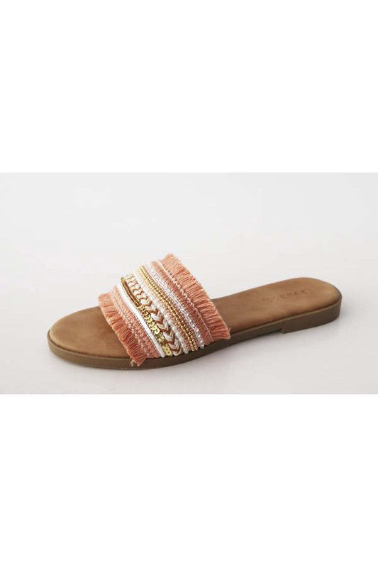 There is no better shoe to wear when you are bound for the Amalfi coast than these adorable sandals featuring a flat sole, a slip on silhouette with rounded open toes, and a wide over-the-foot boho fringe canvas strap! This sandal runs more true to size.