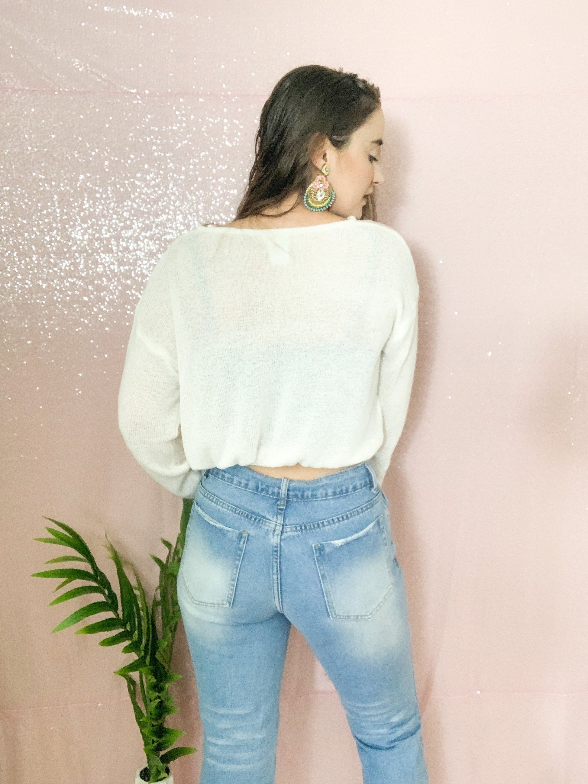 - Round Neck Long Sleeve Button Down Drawstring Crop top